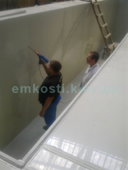 Перевірка швів на герметичність проводилася за допомогою електроіскрового дефектоскопа і згідно ГОСТ 16971-71 "Шви зварних з'єднань з вініпласту, полівінілхлоридного пластикату і поліетилену. Методи контролю якості.". Футеровка виконана за методом "ковзного вкладника" з урахуванням вимог DVS 22-05. Для футерування використаний листової поліпропілен фірми SIMONA PP-C товщиною 15мм.