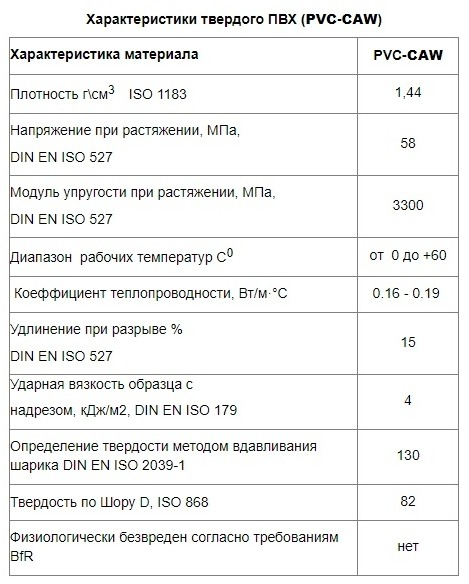 PVC-U відрізняється твердістю і високою міцністю. Температурний діапазон його застосування простягається від 0 ° C до + 60 ° C. PVC-U має гарну стійкість по відношенню до органічних і неорганічних хімікалій, а також окислюючими середах.