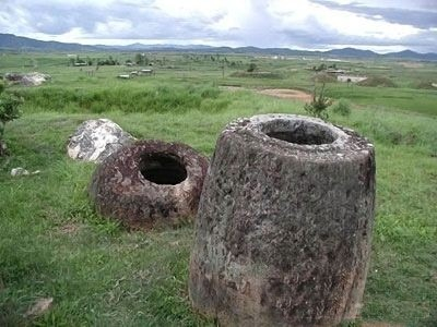 Долина Кувшинів (Лаос). Ємкості висічені з цілісного каміння. Вік ємностей 2,5-3 тис. років !!!