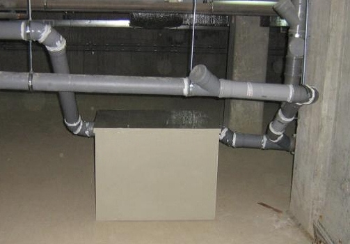 3. Вихідний отвір жировловлювача для стоків повинен знаходитися вище точки входу в каналізацію. Причому трубопровід, від жировловлювача до входу в каналізаційну систему, повинен мати також ухил не менше 1 градуса на 1 м.п. Якщо жироуловлючач встановлюєьться в пвдвальному або напівпідвальному приміщені та вимога по збереженню ухилу для зліву в вуличну каналізацію не може бути віконана зарахунок звичайного труборовіда, то необхідно встановлення після жироуловлювача сололіфта або міні КНС (каналізаційної насосної станції).