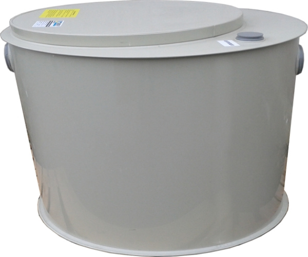 Найменший цехової сепаратор жиру круглої форми на 100л під трубу ф50мм. Може встановлюватися одночасно на кілька мийок, в залежності від інтенсивності роботи. Монтаж жировловлювача зазвичай проводиться в цеху, біля мийок, або в підвальному приміщенні під цехом.